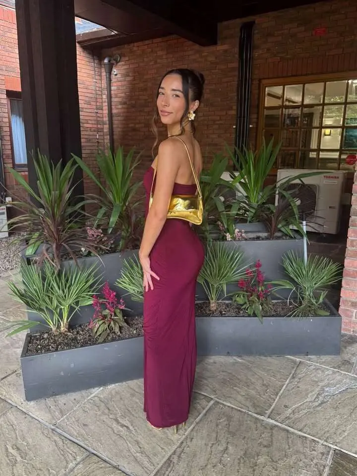 Material:* 83% Polyester, 17% SpandexAvailable in: Brown, Black, Wine Red Sizes: S, M, LStyle note: The dress does the work—add strappy heels, a clutch, and nothing else.