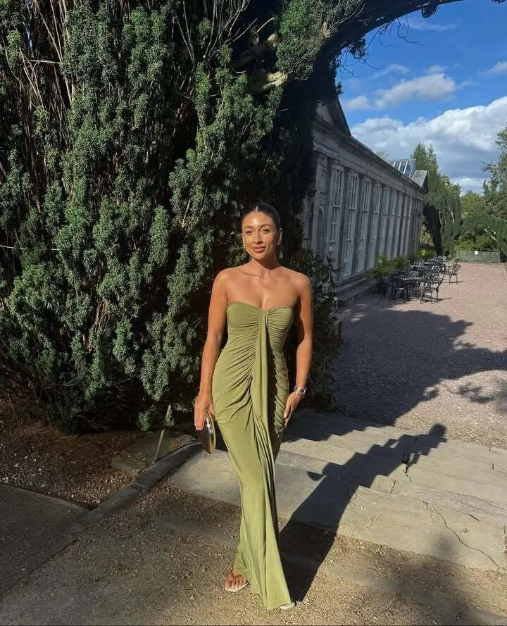 The Elena proves that restraint is its own kind of power. A strapless sweetheart neckline meets expertly gathered ruching that runs the length of the bodice sculpting, smoothing, and flattering in all the right places. The result is a silhouette that feels like a second skin.Cut in a stretch-blend fabric that moves with you, this floor-length column dress is as comfortable as it is captivating. No embellishments, no distractions—just timeless, confident elegance.