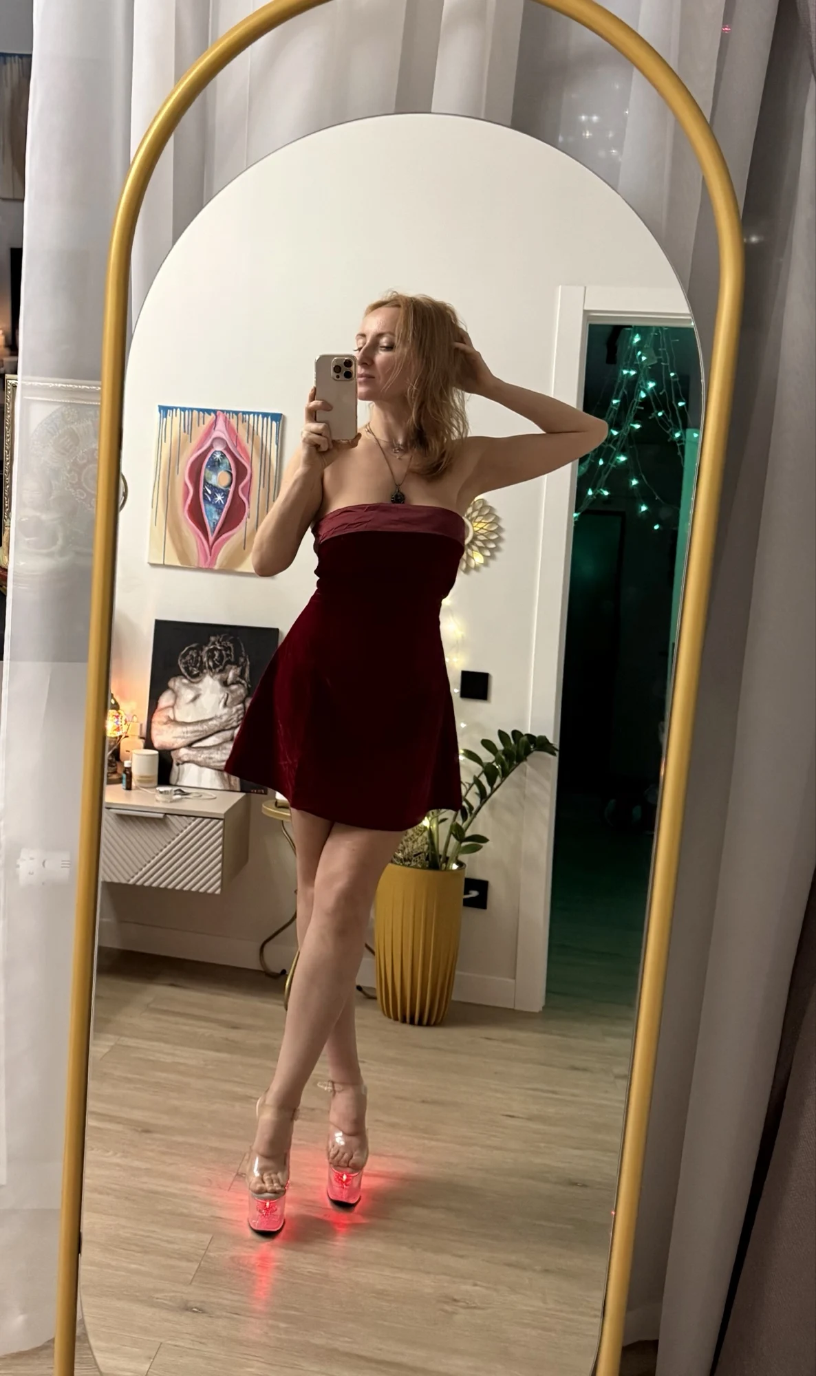 The Velvet Doll is timeless with a twist. Luxe velvet fabric meets a sleek satin bandeau neckline, creating a rich texture contrast that feels instantly expensive. The structured A-line silhouette nips at the waist and flares softly at the hip—flattering, flirty, and made for movement.