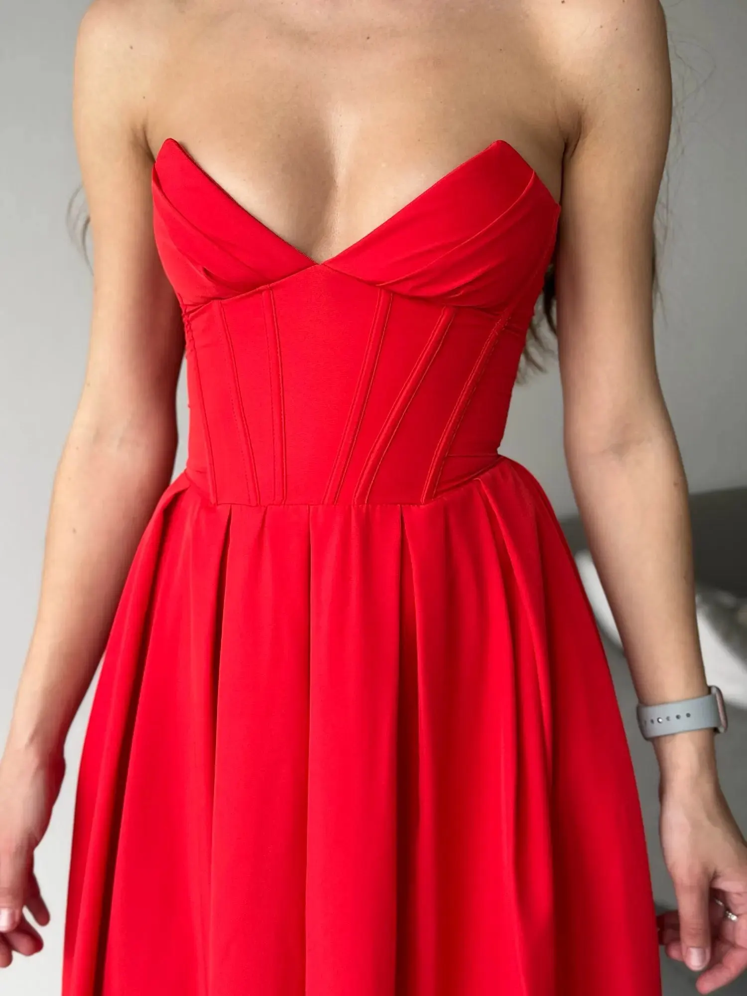 The Isla Dress pairs a sculpted, strapless bodice with a voluminous princess skirt that moves with every step. Designed to cinch the waist and skim over the hips, she’s the perfect mix of romantic and refined made for birthdays, black-tie and every “dress up” moment.