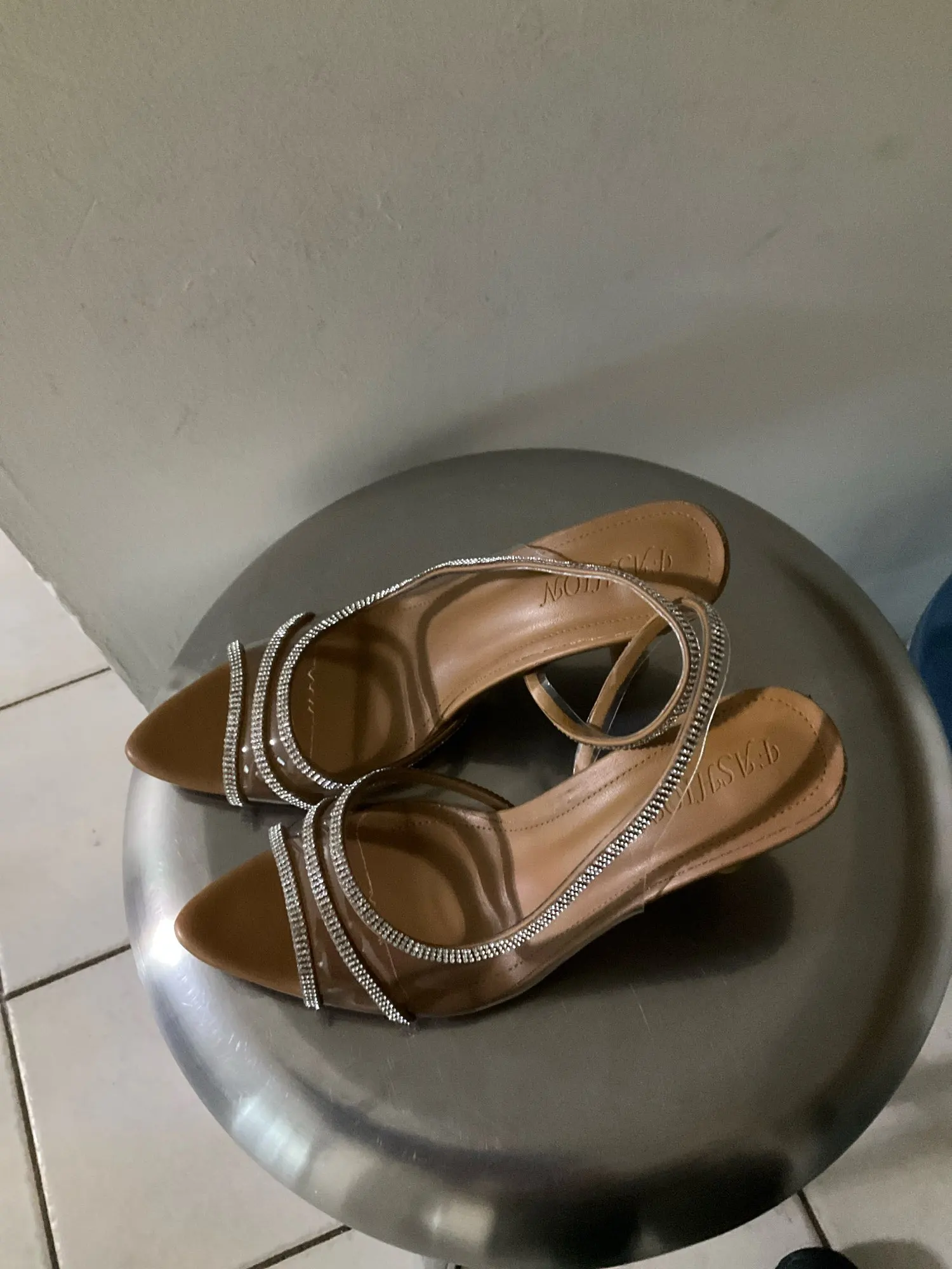 These sophisticated heels blend contemporary design with timeless glamour. The crystal-trimmed straps add just the right amount of sparkle while the clear paneling keeps the look fresh and modern. Perfect for cocktail parties, evening events, or elevated everyday wear. Pair with tailored trousers or dresses for effortlessly chic style.