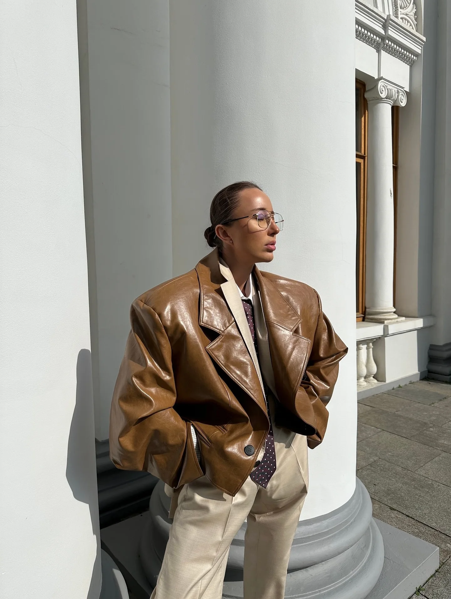 SEVILLE JACKET — Oversized Leather Moto with Waist Tie